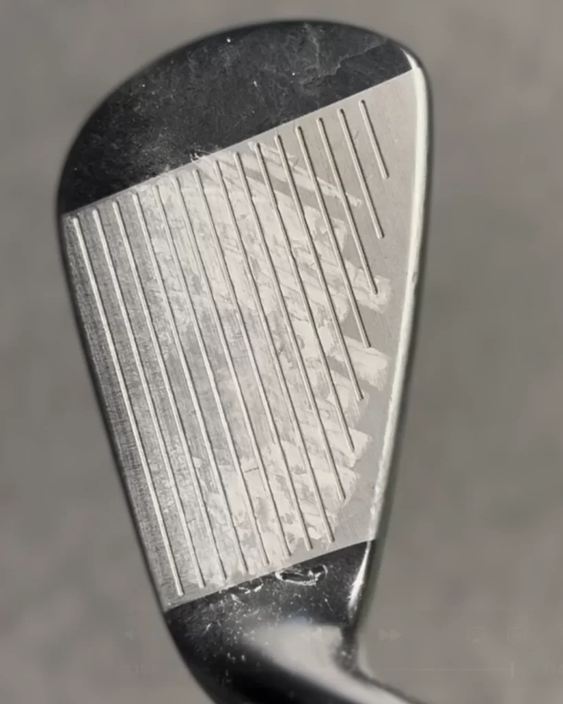 Har hyfsat lågt handicap (1.9) men brottats med ganska splittrad träffbild med järnen/gärna träffat in mot hälen. Efter halvtimmes fitting med gradvis justering av vikter (i grepp, skaft och klubbhuvud) träffbild enligt bilden/efter 5 slag med varje klubba (där träffbilden för min egna klubbor inte var i närheten av samma fokus)!